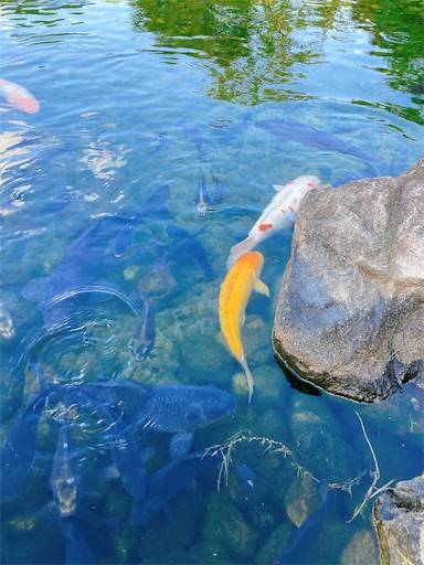 鯉に餌やりしていると、おっとりした鯉もいれば、がめつい鯉もいます(笑)