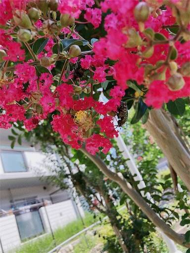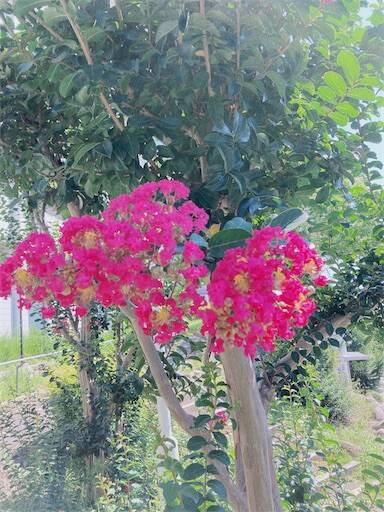 鮮やかなピンクとスモーキーっぽい木の色合いが素敵なんですね。